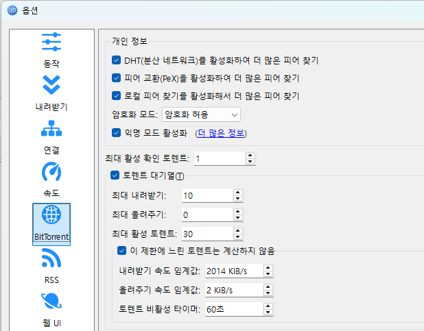큐빗토렌트-qBittorrent 설정